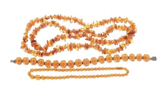 Lot de trois colliers d'ambre comprenant un sautoir de perles d'...