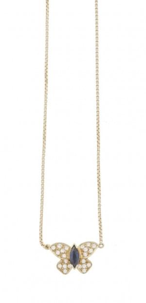 3076. Collier à maille vénitienne retenant un pendentif papillon au co...
