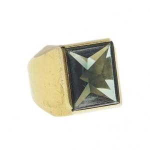 3064. Chevalière sertie d'un saphir jaune synthétique taille marquise...