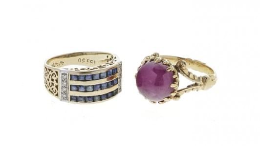 3072. Lot de deux bagues, l'une sertie d'un saphir en cabochon, l'autr...