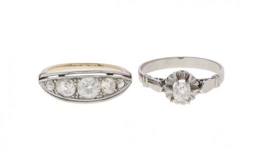 3082. Lot de deux bagues, l'une sertie de trois diamants taille ancien...
