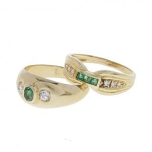 3023. Lot de deux bagues anciennes, l'une sertie de trois émeraudes en...