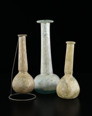 3414. Trois flacons à longs cols, époque romaine, Ier-IIIe s ap. JC