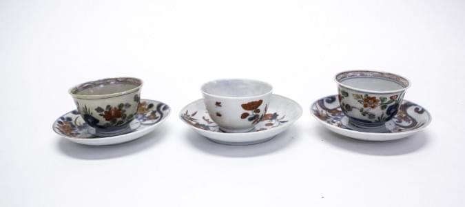 3419. Trois tasses et sous-tasses imari, Chine, XVIIIe s