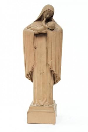 Vierge Marie à l'Enfant Jésus, terre cuite, H 37 cm