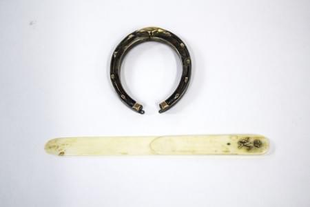 Papier bouilli laqué, L 17 cm. On joint un livret assorti sur Pa...