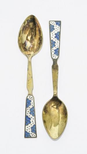 3652. Ceinture à décor de médaillons niellés et 2 cuillères