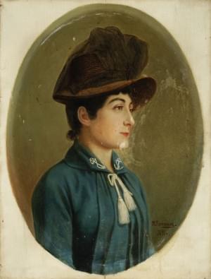 Jeune fille napolitaine, huile sur toile ovale, 99x62 cm