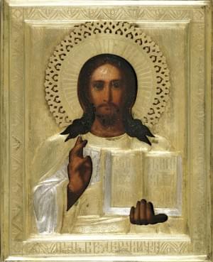 Icône russe, tempera sur panneau, oklade en métal argenté, XIXe...
