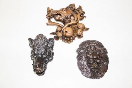 3828. Trois appliques, deux figurant des sangliers et une un lion