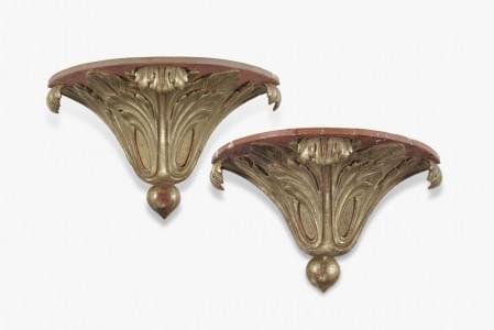 L'une à décor de grotesque, l'autre de chérubins, bois sculpté,...