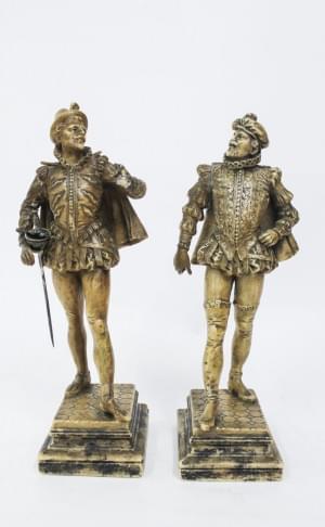 Deux Valois, deux figurines en cire patinée, H 40 cm