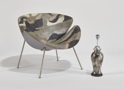 Tissu camouflage. On joint une lampe en porcelaine à décor assor...