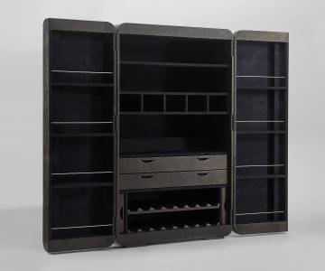 Métal chromé et doré, verre fumé, 38x97x97 cm