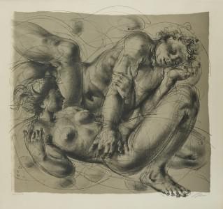 Couple enlacé, lithographie, signée et numérotée 84/150, 74x80 c...