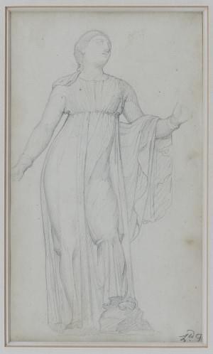 Etude de jeune femme drapée à l'antique, lavis sur papier, monog...