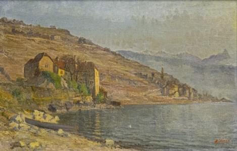 Vue du lac Léman, huile sur toile, signée, 30x45 cm