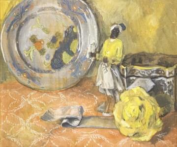 Nature morte à la statuette de Maure et assiette Compagnie des I...