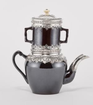 France, fin XIXe s, céramique émaillée aubergine, monture en arg...