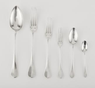 479. Suite de 6 fourchettes et 6 cuillères aux armes de la famille pa...