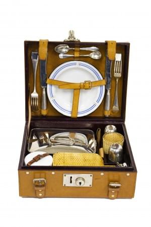 Angleterre, verre, métal argenté et cuir, 13x31x24 cm