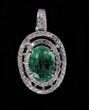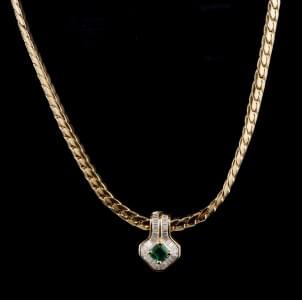 700. Collier à maille gourmette retenant un pendentif serti d'une éme...