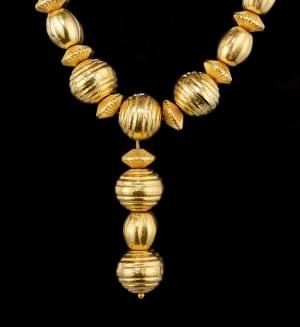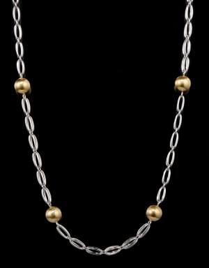 701. Sautoir deux ors à maille fantaisie ponctuée de boules d'or