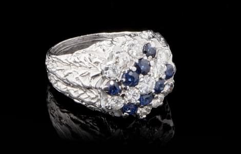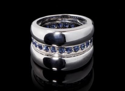 709. Bague pavée d'une alternance de lignes de diamants et de saphirs