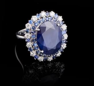 707. Bague sertie d'un saphir taille ovale (env. 8,5 ct) dans un doub...