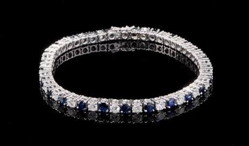 714. Bracelet ligne serti de diamants (env. 3,2 ct) alternés de saphi...