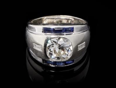 694. Bague sertie d'un saphir (env. 1,6 ct) épaulé de diamants