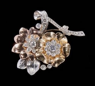 719. Broche à motif de deux fleurs serties de diamants taille ancienn...