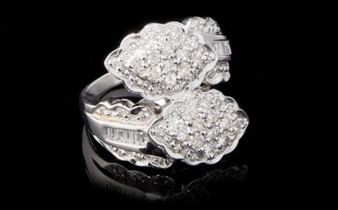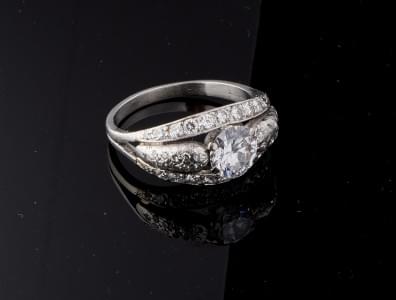 749. Bague sertie d'un diamant taille ancienne (1,8 ct) entouré de di...