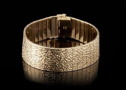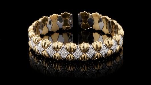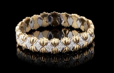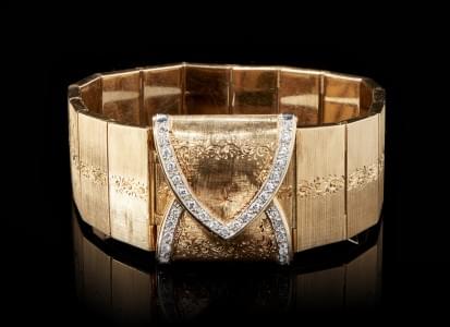 744. Bracelet ciselé orné d'un fermoir serti de diamant