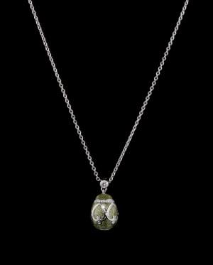 755. Fabergé, collier retenant un pendentif oeuf émaillé rehaussé de...