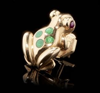 762. Cartier, pin's grenouille émaillé aux yeux sertis de rubis
