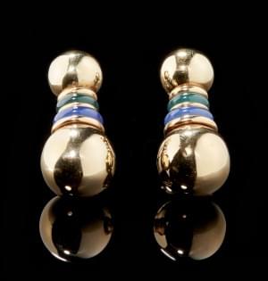 770. Boucheron, clips d'oreilles sertis d'anneaux d'agate bleue et ve...