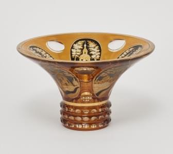 Verre, overlay jaune à décor dans des réserves de monuments sur...