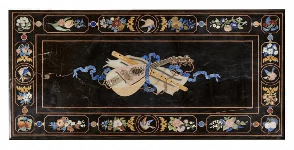 Marqueterie de marbres polychromes à décor d'un trophée musical...