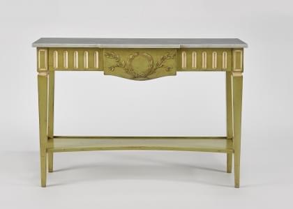 Un tiroir en ceinture, bois peint vert, marbre blanc, 84x117x35...