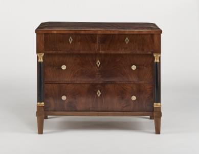 Quatre tiroirs, colonnes détachées, noyer, 92x130x65 cm