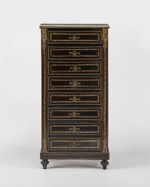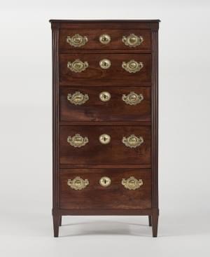 Six tiroirs, acajou et laiton doré, 143x72x41 cm