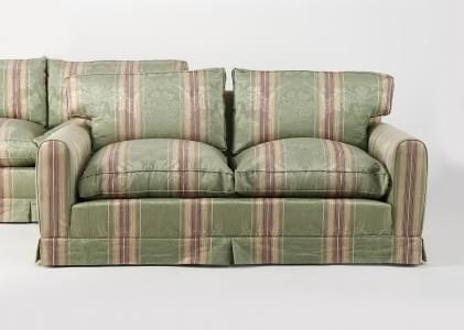 Tissu rayé vert et rouge, L 175 cm. On joint une paire de rideau...