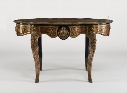 Marqueterie de laiton, écaille et bois noirci, bronze doré, 111x...