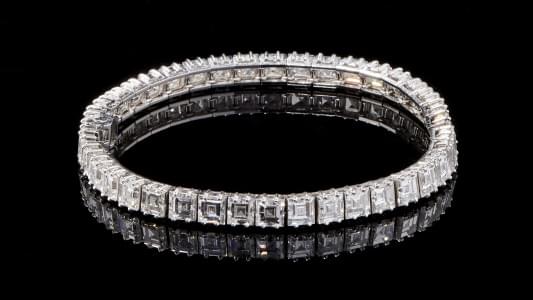 724. Bracelet rivière serti de diamants taille princesse (env. entre...