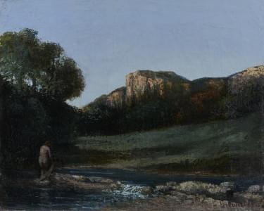 Paysage avec baigneuse, huile sur toile, circa 1872/73, signée,...