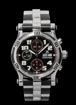 Cadran et lunette noirs, index et aiguilles luminescents, date à...