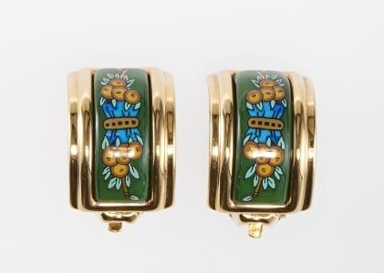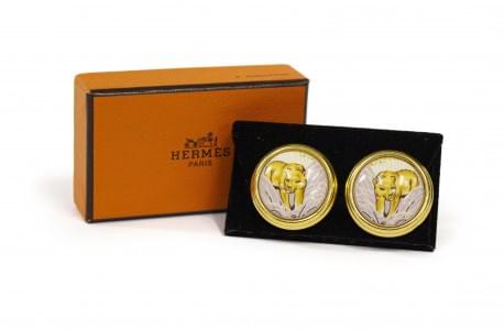 3117. Hermès, clips d'oreilles ronds à décor de lionnes
