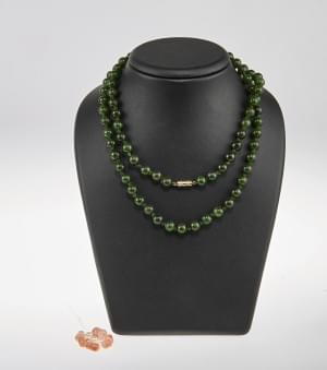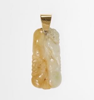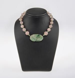 3119. Collier de perles de jade et de quartz rose retenant un motif en...