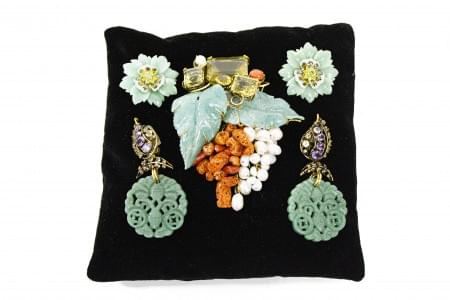 3123. Iradj Moini, lot de deux broches et une paire de clips d'oreille...